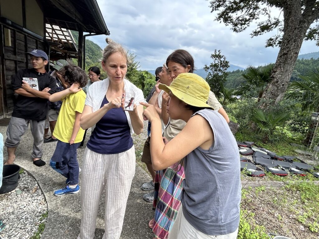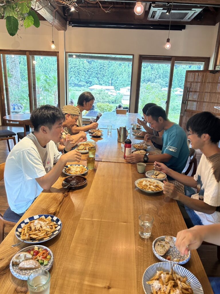 川から上がり、WEEK母屋にて、お昼ご飯を食べました。食事中もそれぞれのいきものとの関わり方についての話が生まれていて、母屋がいきもの研究室のような空間みたいで楽しかったです。