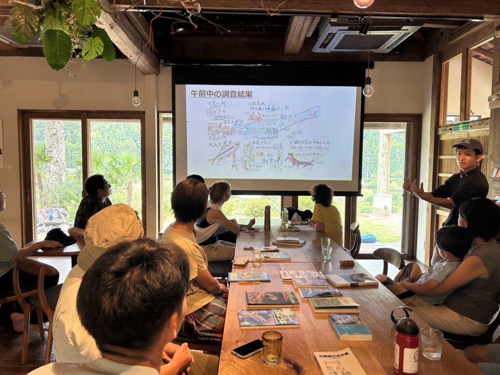 神山在住の方は、削岩により魚の隠れ家が減少したことや、植林後の川の水量減少したことなどの魚が減少した理由を教えてくれました。また、面白い視点として、人間がよく利用する種類(アユやウナギ)が減ったこと、観測者の感覚(大人になるにつれ、魚を見る機会が無くなった)により魚が減ったと思われているのではないかという「みる人や目的によって感じ方は異なる」という意見が挙げられました。
