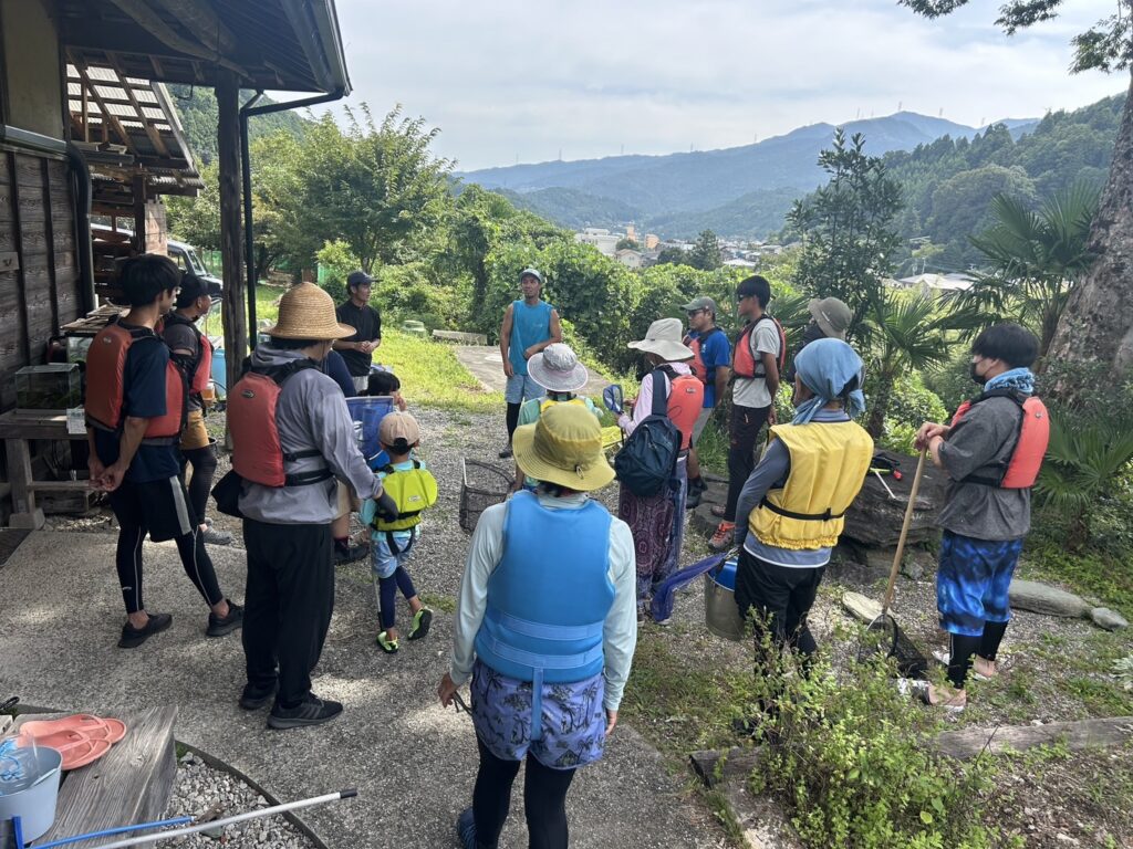 当日はWEEK神山の母屋前に集合、はじめに安全確認と簡単な自己紹介を行いました。ライフジャケットも装着し、準備満タンです。