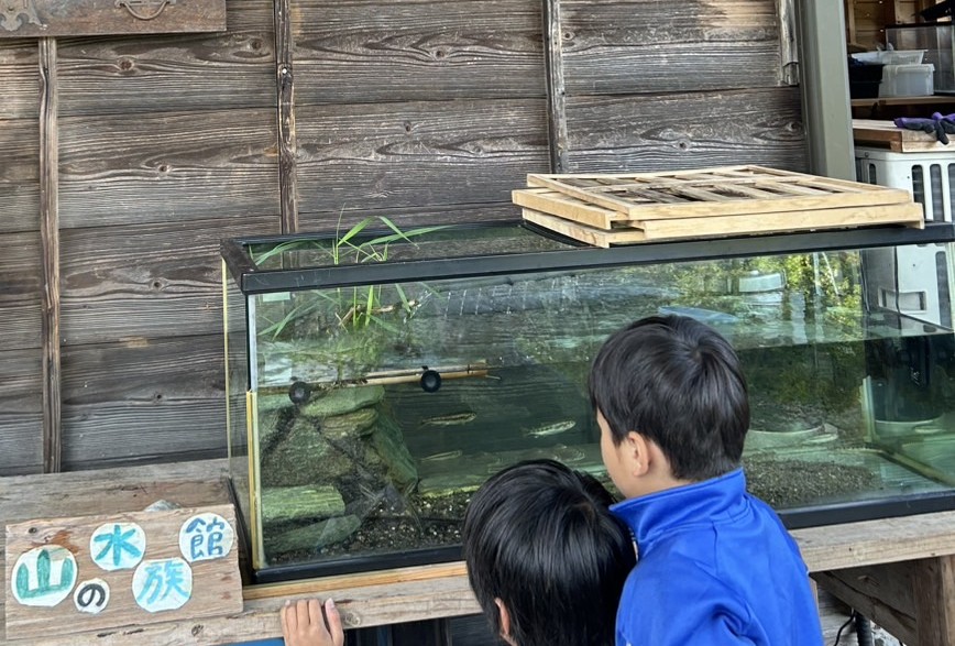 鮎喰川(神山の中心を流れる大きな川)の水生生物を身近で観察できる仕組みとして、流域水槽を人が集まる場所においていくという取り組みです。現在、宿以外では、食事処の「山びこ」さん、おうち診療所に置かせてもらっています。町ぐるみ水族館みたいになっていけばいいなと思います。
