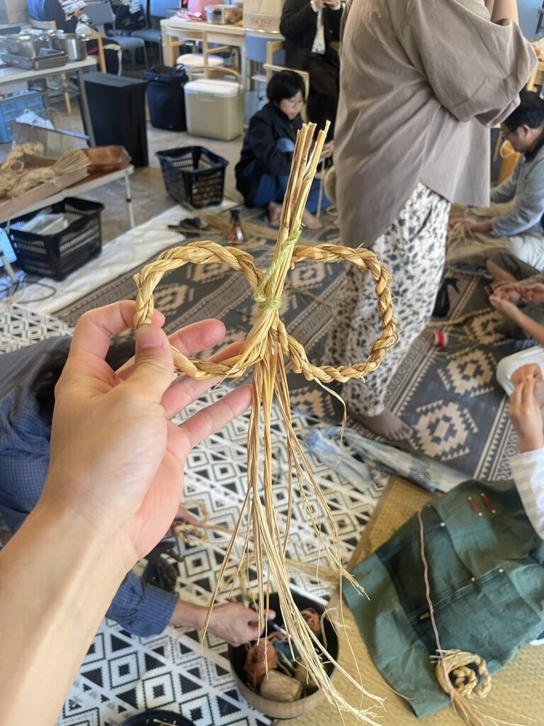 最終日、お世話になったおうち診療所にも挨拶をしに向かいましたが、土曜日ということでスタッフの方はいらっしゃいませんでした。代わりに地域の方がしめ縄ワークショップをされており、小学生の女の子に作り方を教えてもらいました。