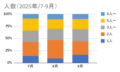 普段は10%程あるリピート率ですが、世間的に人が動く長期休み、このような時期は新規層が増加します。リピートの方があふれているのか、もしくはリピートの方が繁忙期を避けているのか、傾向は様々です。残念ながら、前年の夏に来て、今回も来ていただいたという宿泊の方は存在しませんでした。感覚的にゆっくり過ごす別荘のような滞在を夏の神山町ではできるのかなと勝手に想像したり、ファミリー層や少し年配の方が毎夏に泊まりに来るといった流れの構築は現実的とも分析しております。町内でもキャンプ場や1棟貸しの宿がありますが、おそらく夏の時期が1番跳ね上がると予想しているので、他の動向が少し気になります。そのデータを集積することができれば、さらに明確な動きが見えてくると思います。